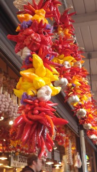 Meandering along the sidewalks, we came to the waterfront views right outside the farmers’ market area, that on a clear, sunny day provides the beautiful view of the Great Wheel set against the background of Mount Rainier in the distance, and the glistening waters of Puget Sound all around. Unfortunately, this day was a bit overcast so there was no Rainer sighting available.