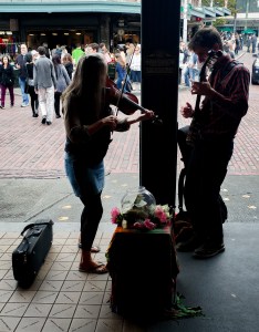 Getting back to appreciating what we had right here (being a long way away from home), we were soon greeted by the chaotic charm of Pike Place Market. There were a plethora of things going on right below the main Public Market sign around the end of Pike Street. The first of these that greeted us was the ‘Free Hugs‘ sign being held up by three people who were (no prizes for guessing it) giving out free hugs! This is not the first time that I am seeing this sign but it has always been at a distance (physical and mental) where I have always counted myself out of the picture. But today, or rather on this day, I decided to indulge myself with a faint strain of adventure by going and hugging a stranger. ‘Warm hugs really are the best’ as my friend often says and I agree. It does not matter whether it is family, a friend or even a stranger. Warm hugs are like an instant dose of the ‘feel- good’ feeling without the need of any external concoctions like the kind that is legal in the state of Washington.